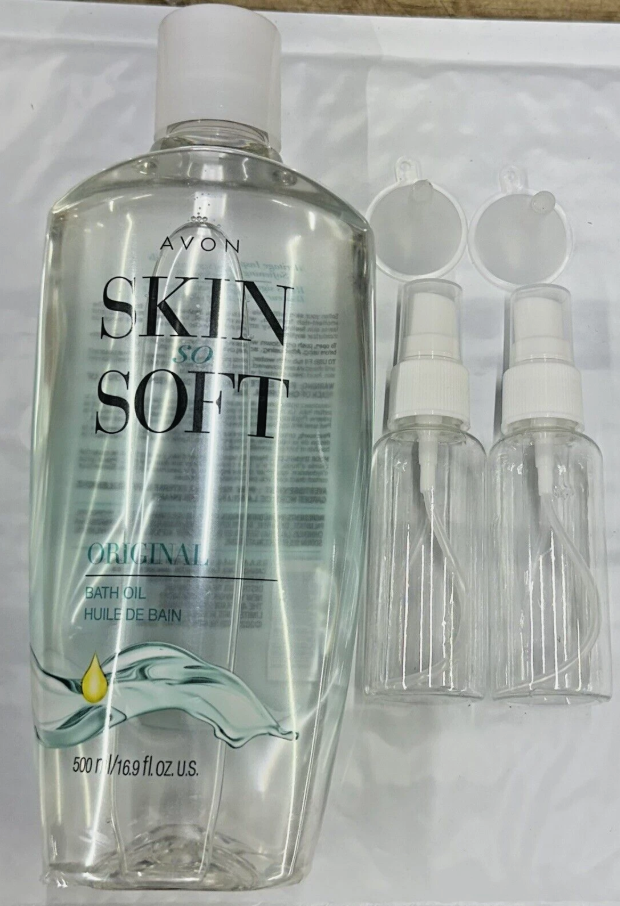 Avon Skin so Soft 16.9oz Unisex Original Bath Oil Bottle/2 Free Travel spray